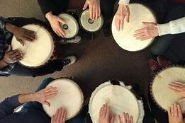 UUCBer AD Chesley leads a drum circle for all ages and abilities. Bring a drum if you have one. Sky Room